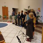 Pünktlich um 9:00 Uhr ging’s los: Die neuen Schulkinder und ihre Familien wurden von den älteren Schülern mit unserem fröhlichen Mottolied empfangen. Ein echter Ohrwurm, der uns daran erinnert, dass Gott wie Sonnenschein ist – und wir wie Blumen, die ihn zum Wachsen brauchen.