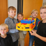 Während beim Lesefrühstück die erste Klasse Buchstaben und Zahlen entdeckt, taucht die zweite Klasse in die Welt der Zahlenräume und Stellenwerttafeln ein oder knackt die Zehnergrenze. Auf dem Stundenplan stehen dann natürlich Deutsch, Mathe, Englisch, Musik, Kunst, Sachkunde, Sport, Religion und Instrumentalkunde. Ja richtig, wir musizieren selbst an der Blockflöte, Geige und am Cello.