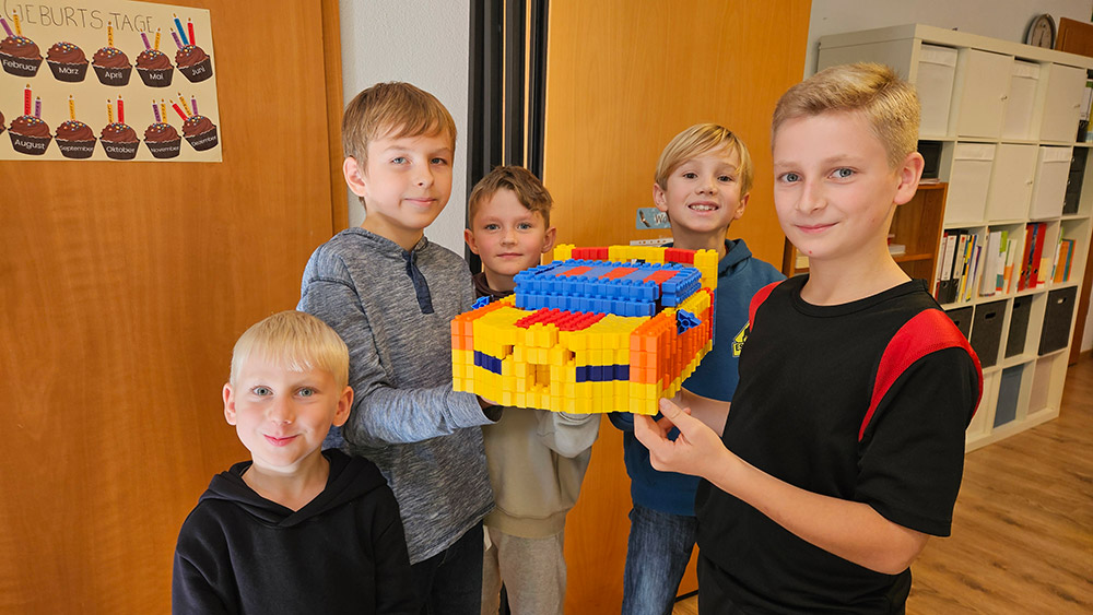 Während beim Lesefrühstück die erste Klasse Buchstaben und Zahlen entdeckt, taucht die zweite Klasse in die Welt der Zahlenräume und Stellenwerttafeln ein oder knackt die Zehnergrenze. Auf dem Stundenplan stehen dann natürlich Deutsch, Mathe, Englisch, Musik, Kunst, Sachkunde, Sport, Religion und Instrumentalkunde. Ja richtig, wir musizieren selbst an der Blockflöte, Geige und am Cello.